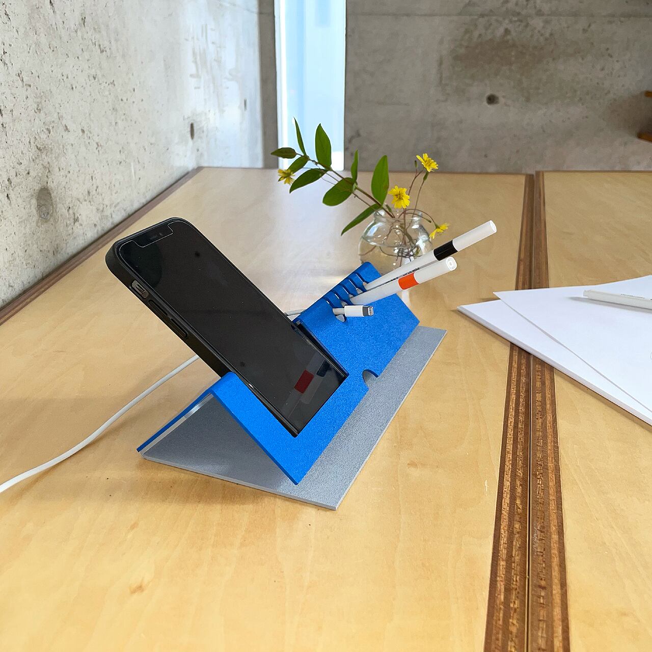 上部はペンなどを立てる穴と スマホスタンドになっているので 散らかりがちなデスクの上を整理して